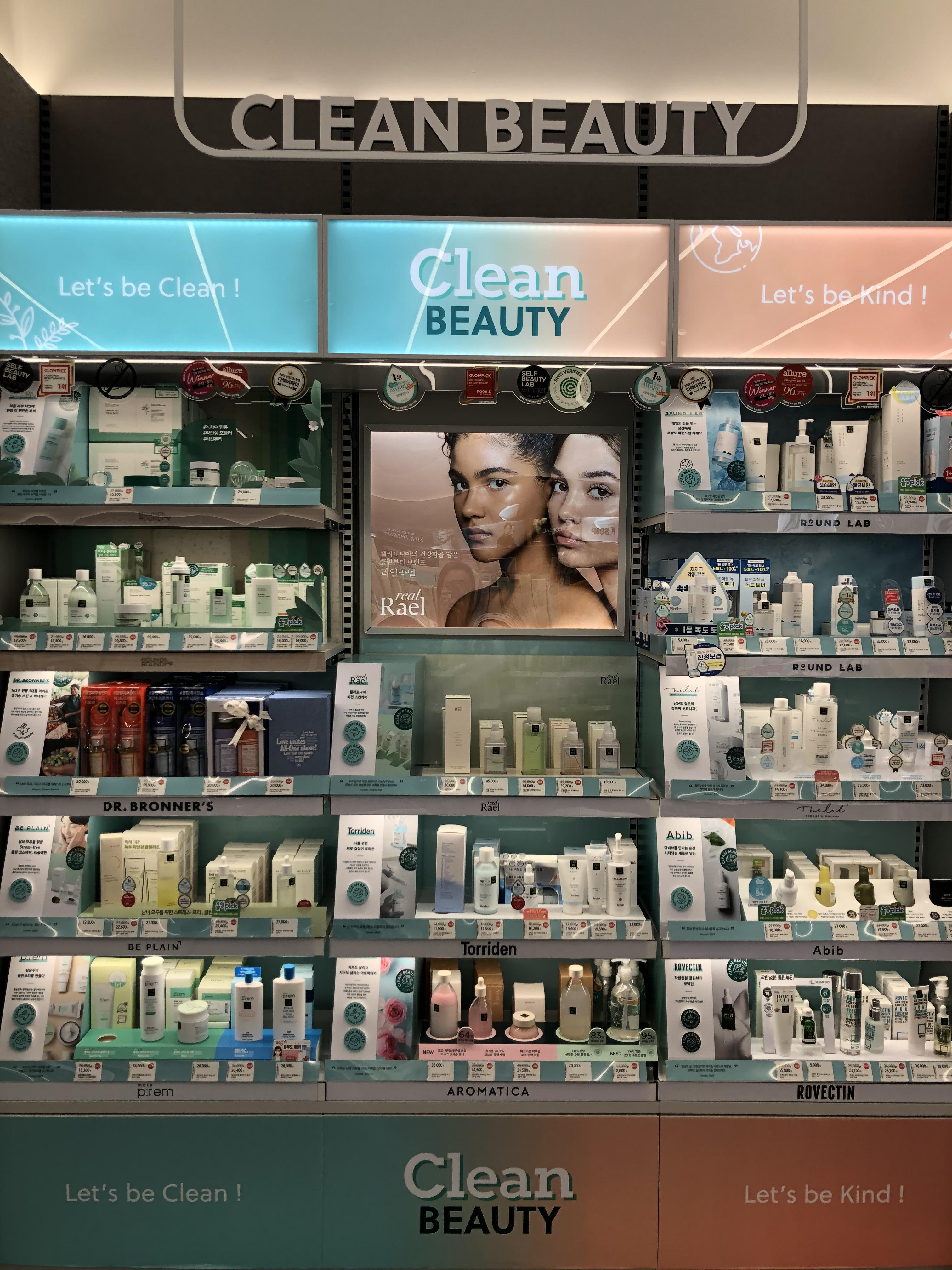 입점되어 있는 화장품들을 선별하여 기준에 부합하는 브랜드 또는 제품을 클린뷰티 존으로 별도의 섹션을 만들게 된 것입니다.
