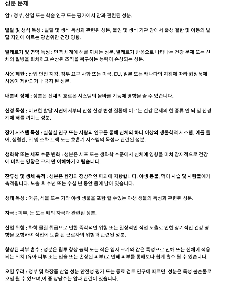 EWG는 1등급이지만 내 피부는 소량이라도 문제가 될 수 있습니다.